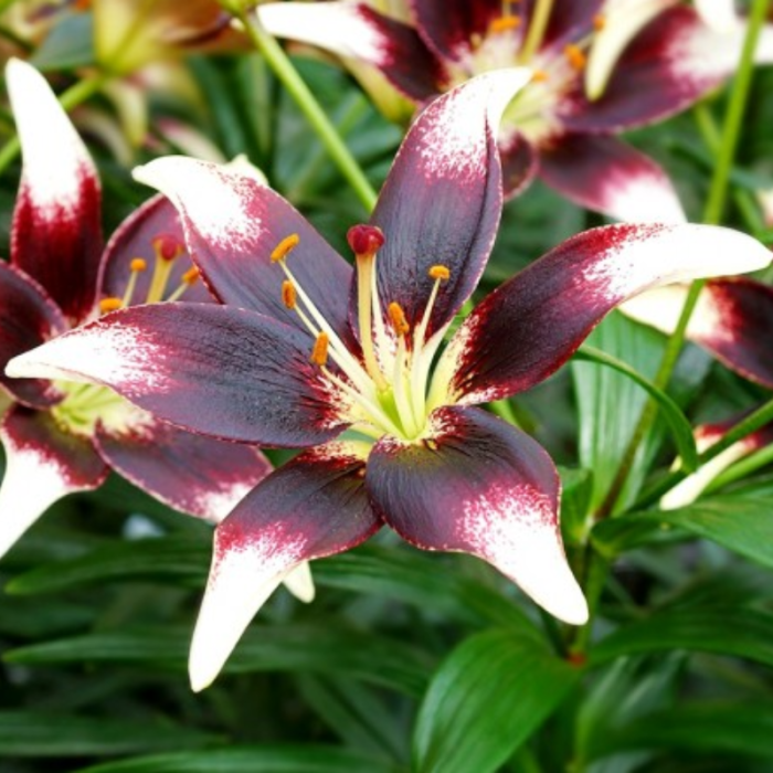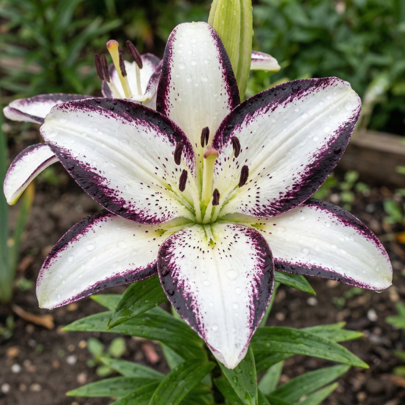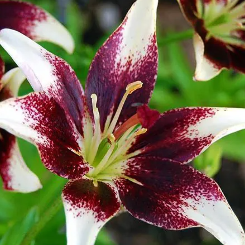 Crinul Netty's Pride este o capodoperă a contrastelor: petale alb-crem cu centrul vișiniu-închis, aproape negru. Un soi rar, cu calibru 16/18, care atrage toate privirile în orice aranjament peisagistic.